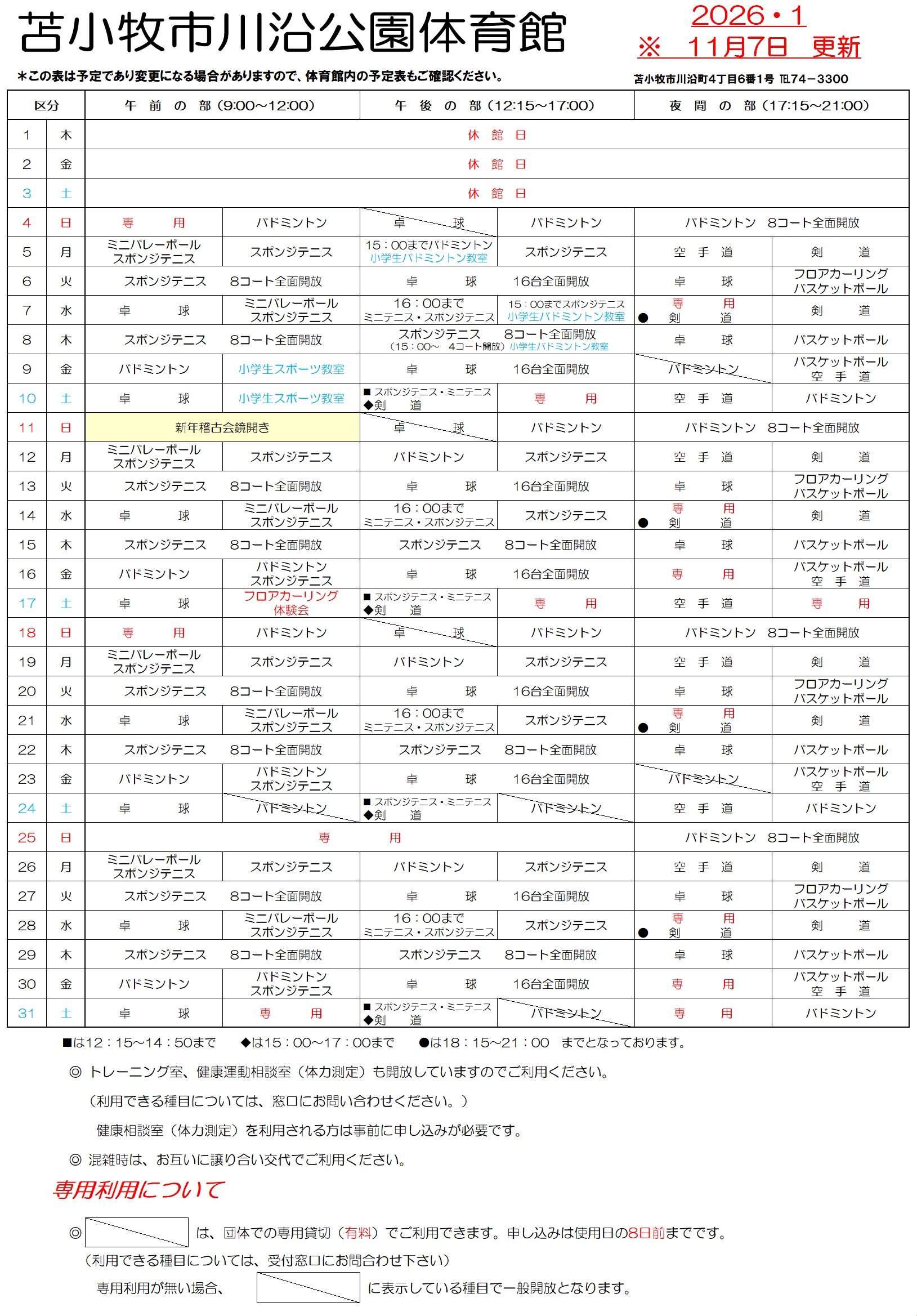 苫小牧市 川沿公園体育館