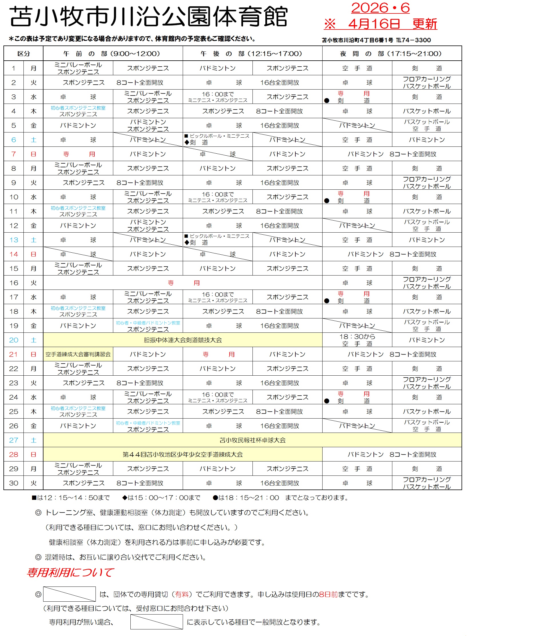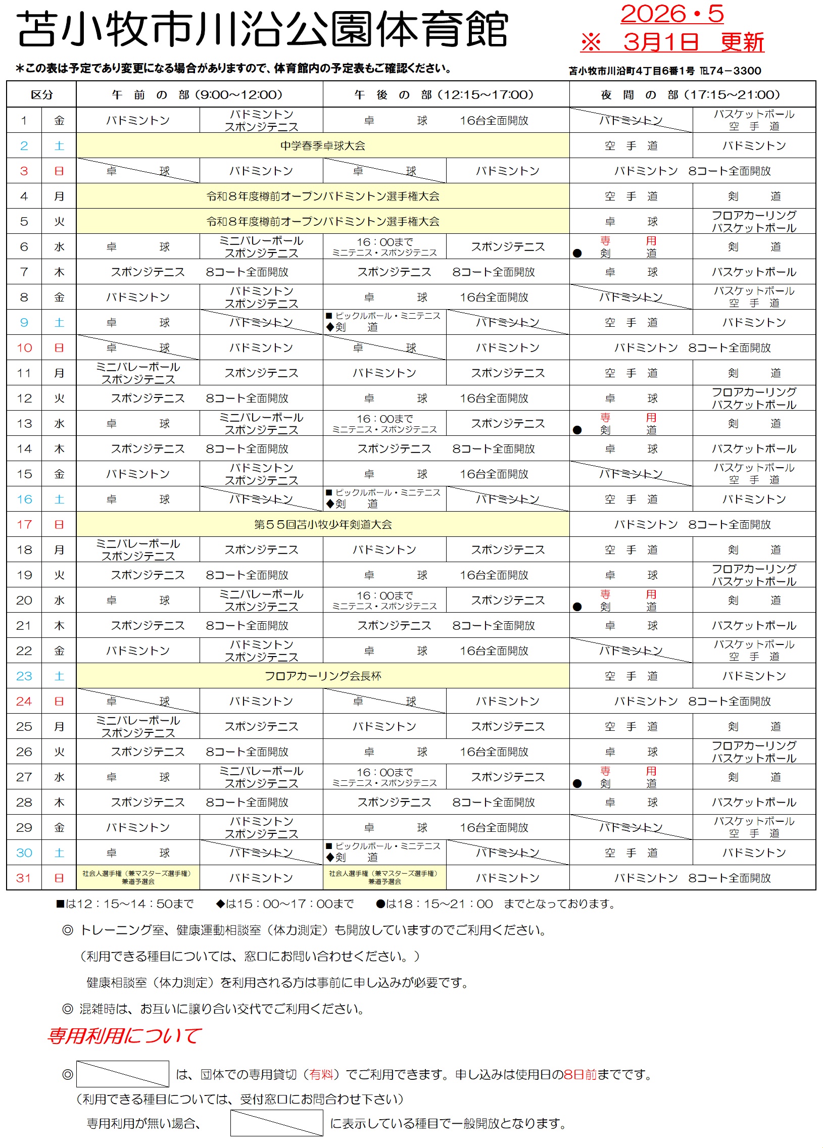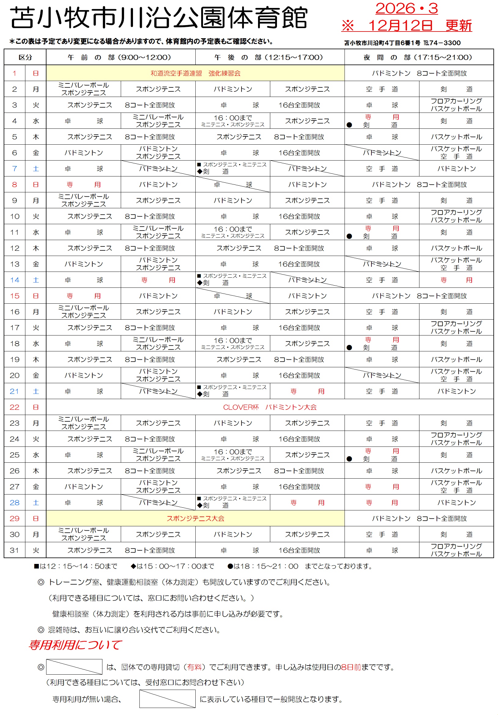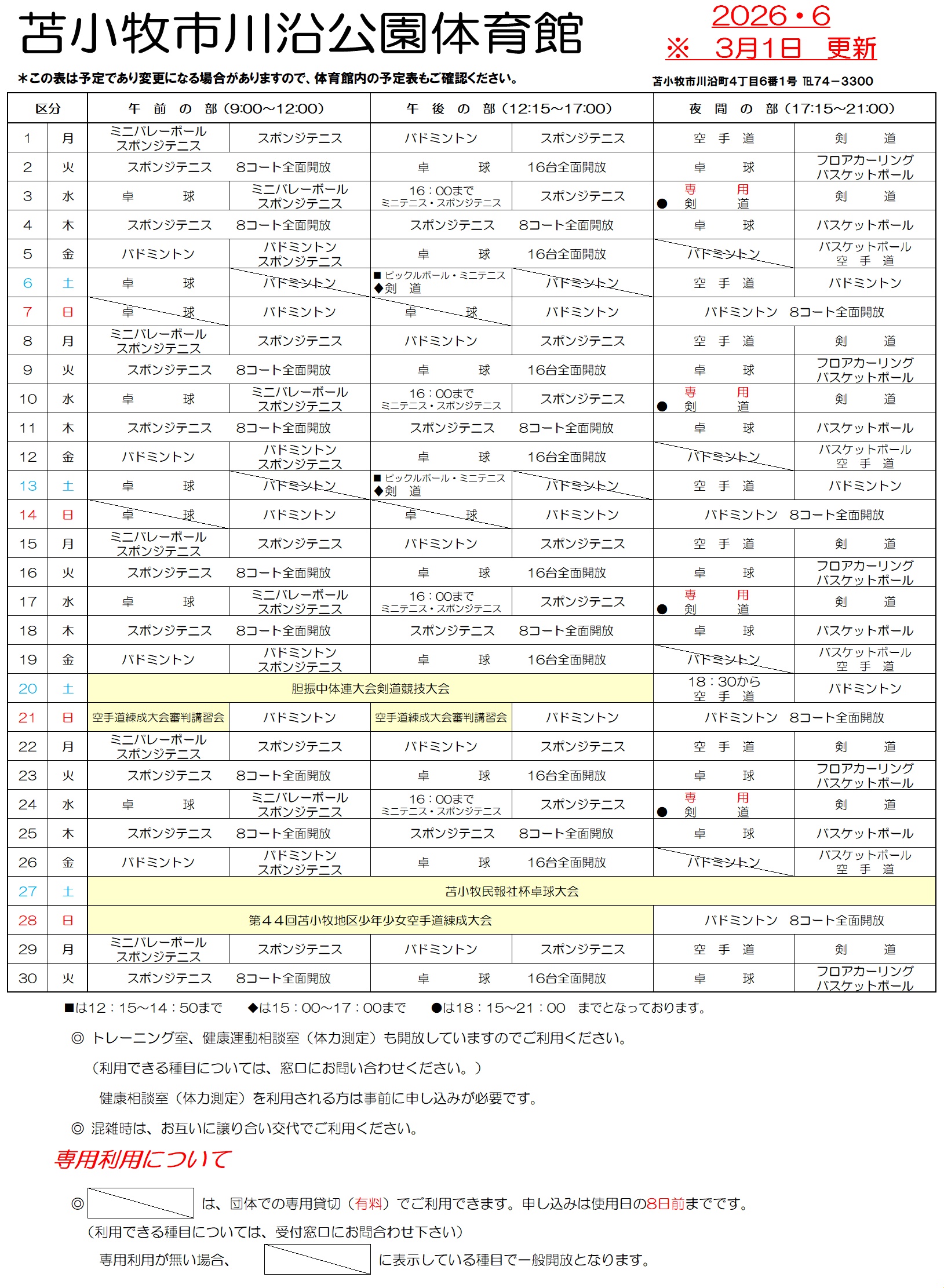 体育館予定表