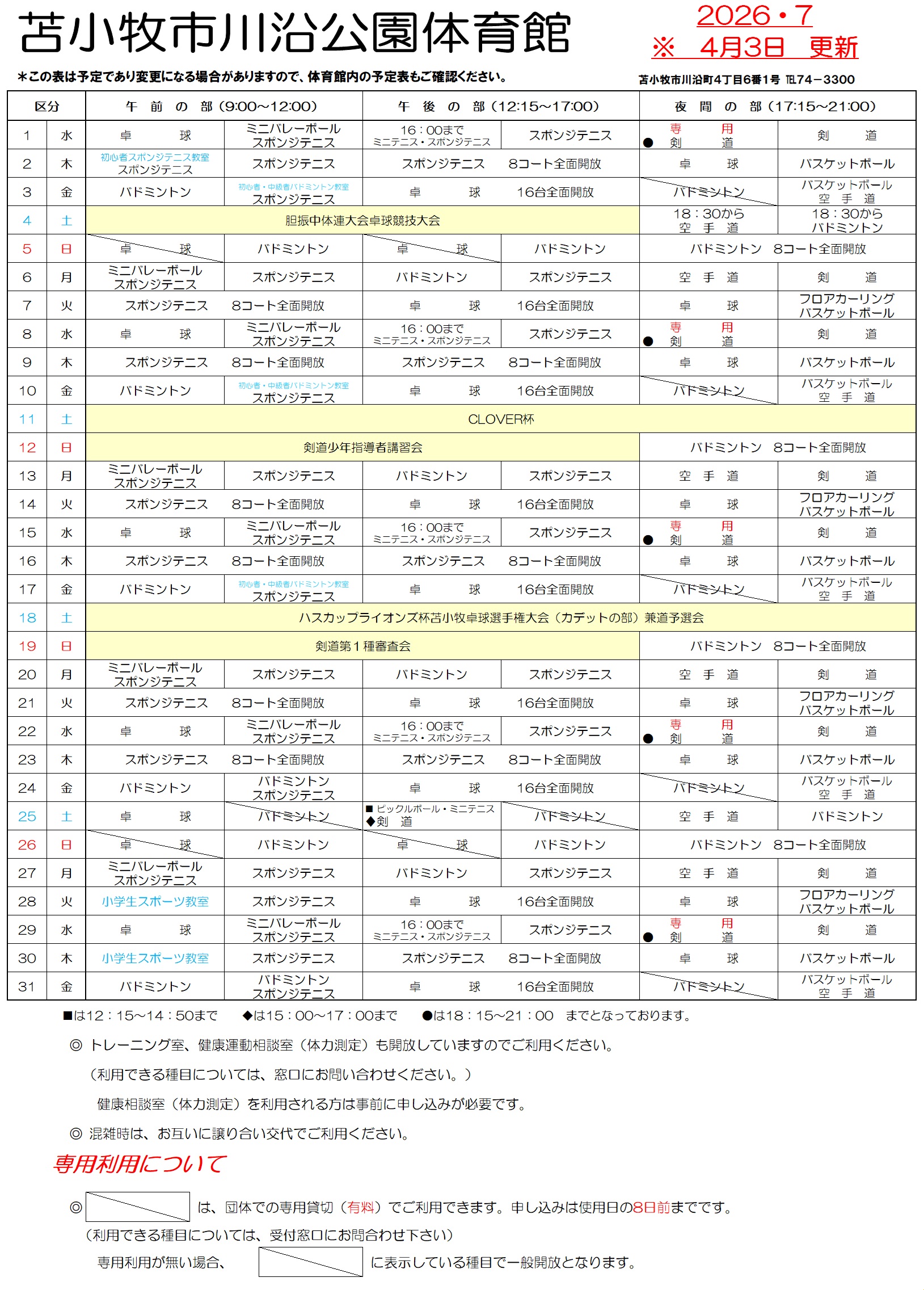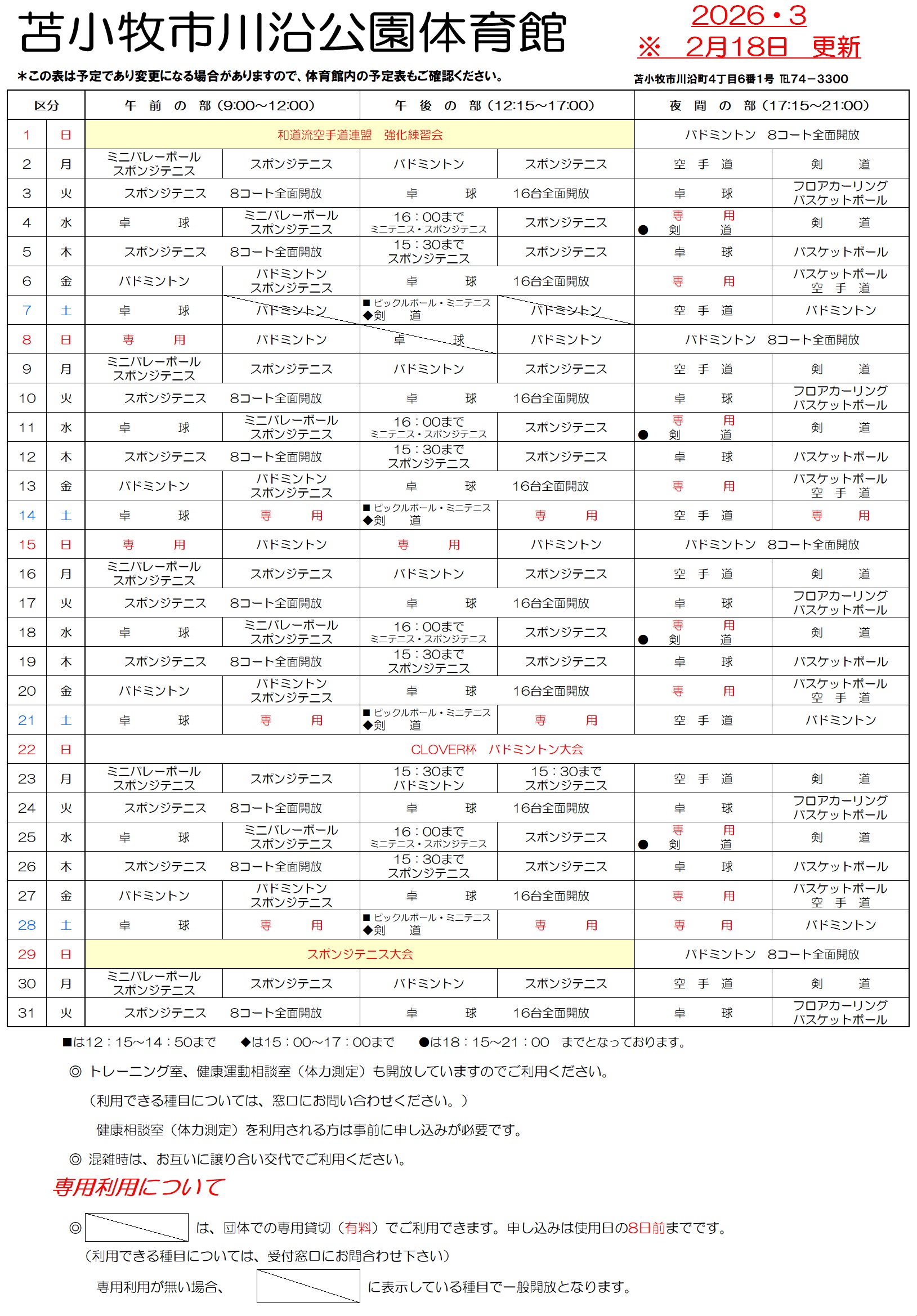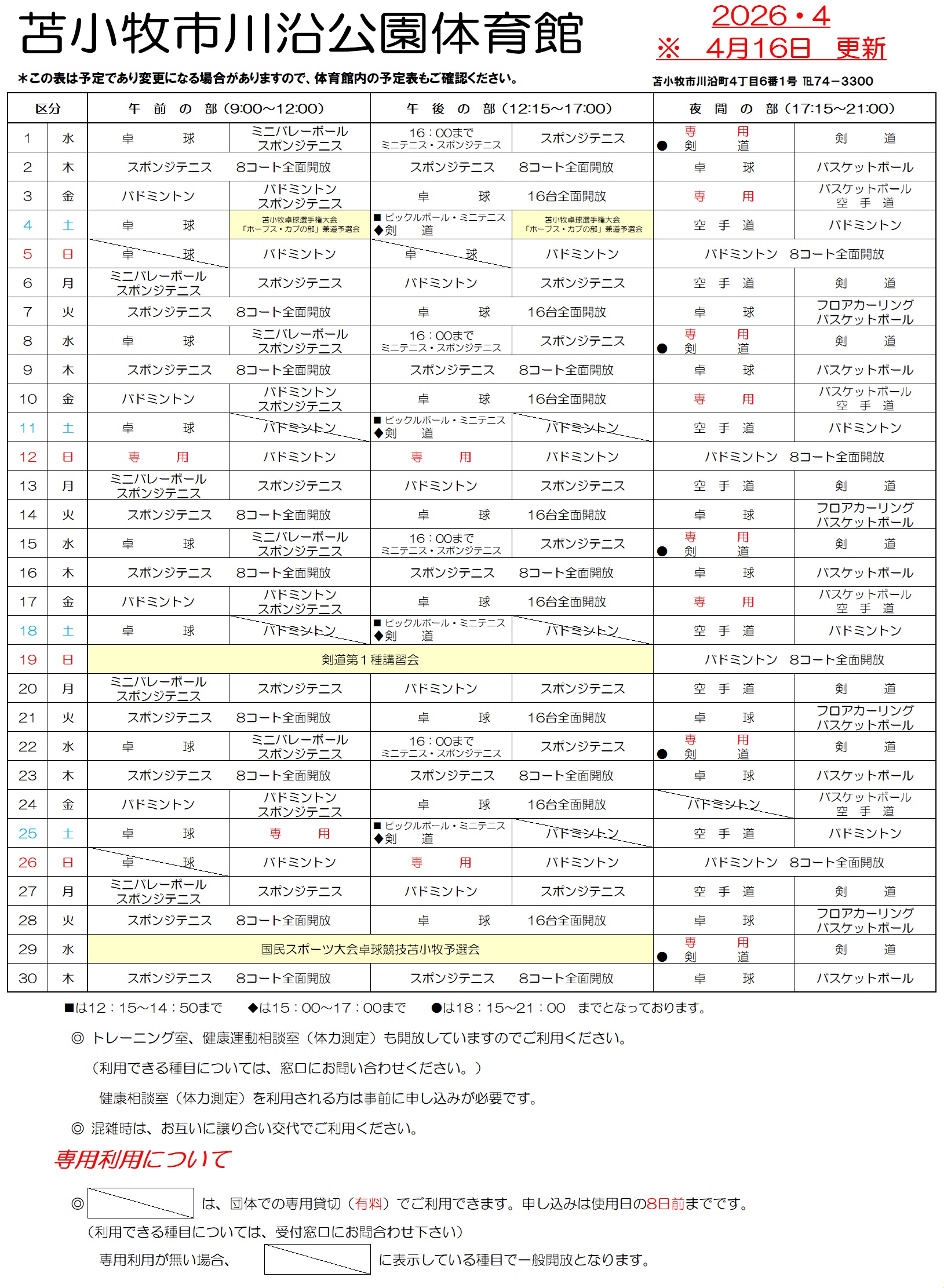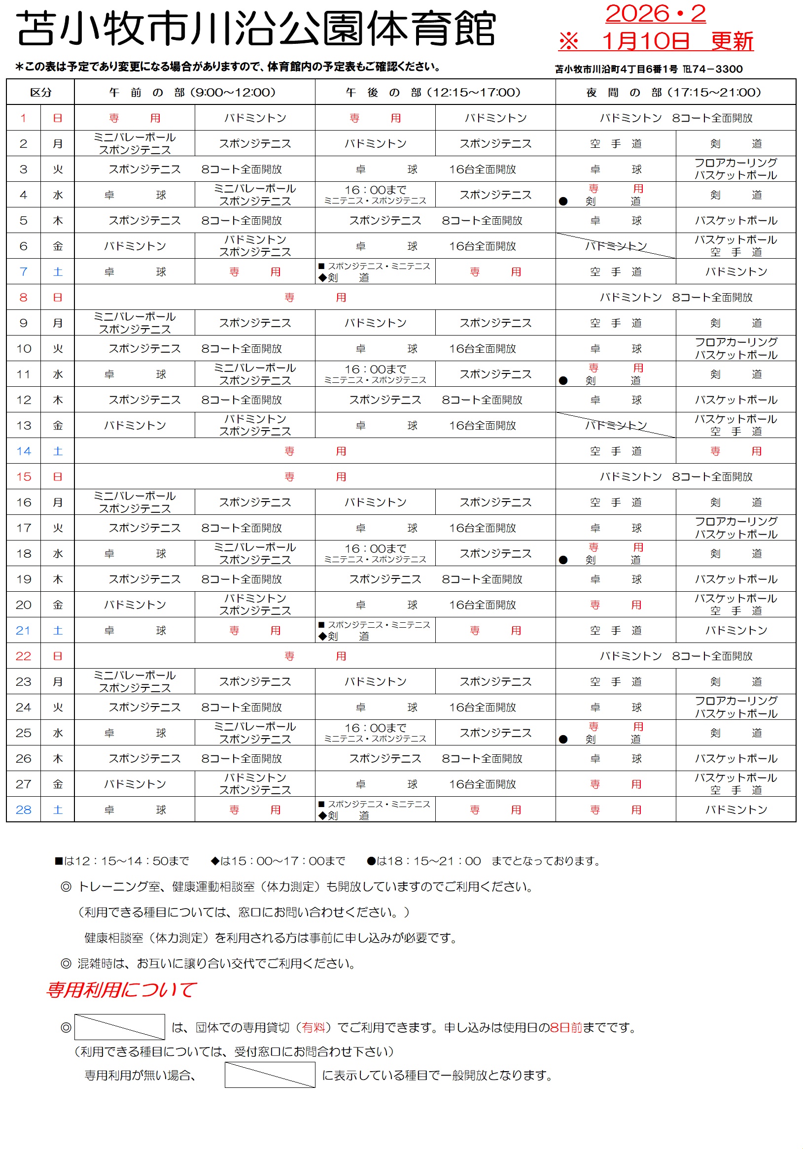 体育館予定表