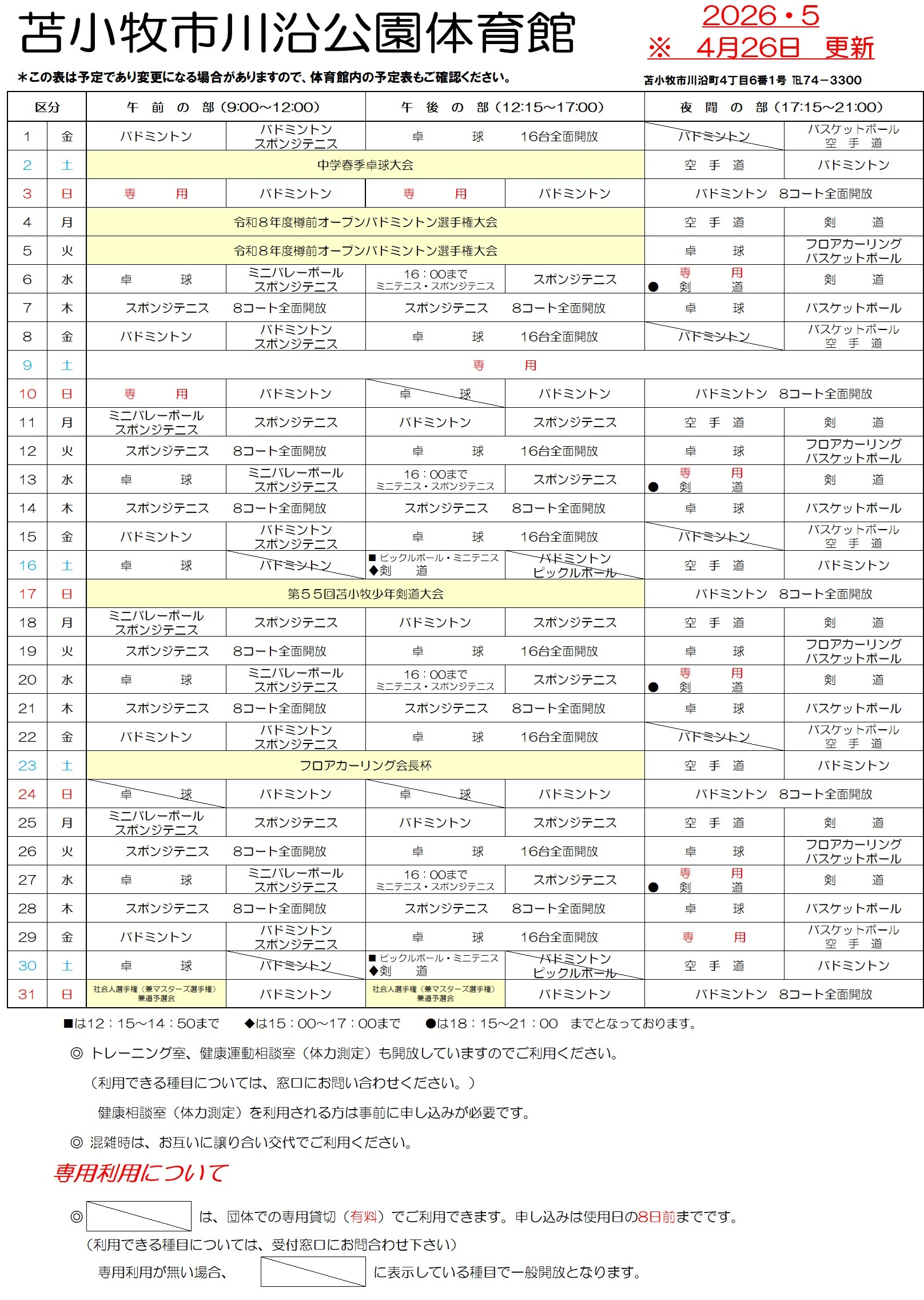 苫小牧市 川沿公園体育館